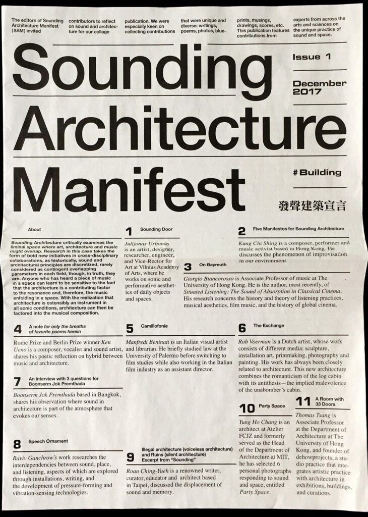 Sounding Architecture Manifest initiated by Thomas Tsang’s dehowprojects with and for arc-gestaltung.